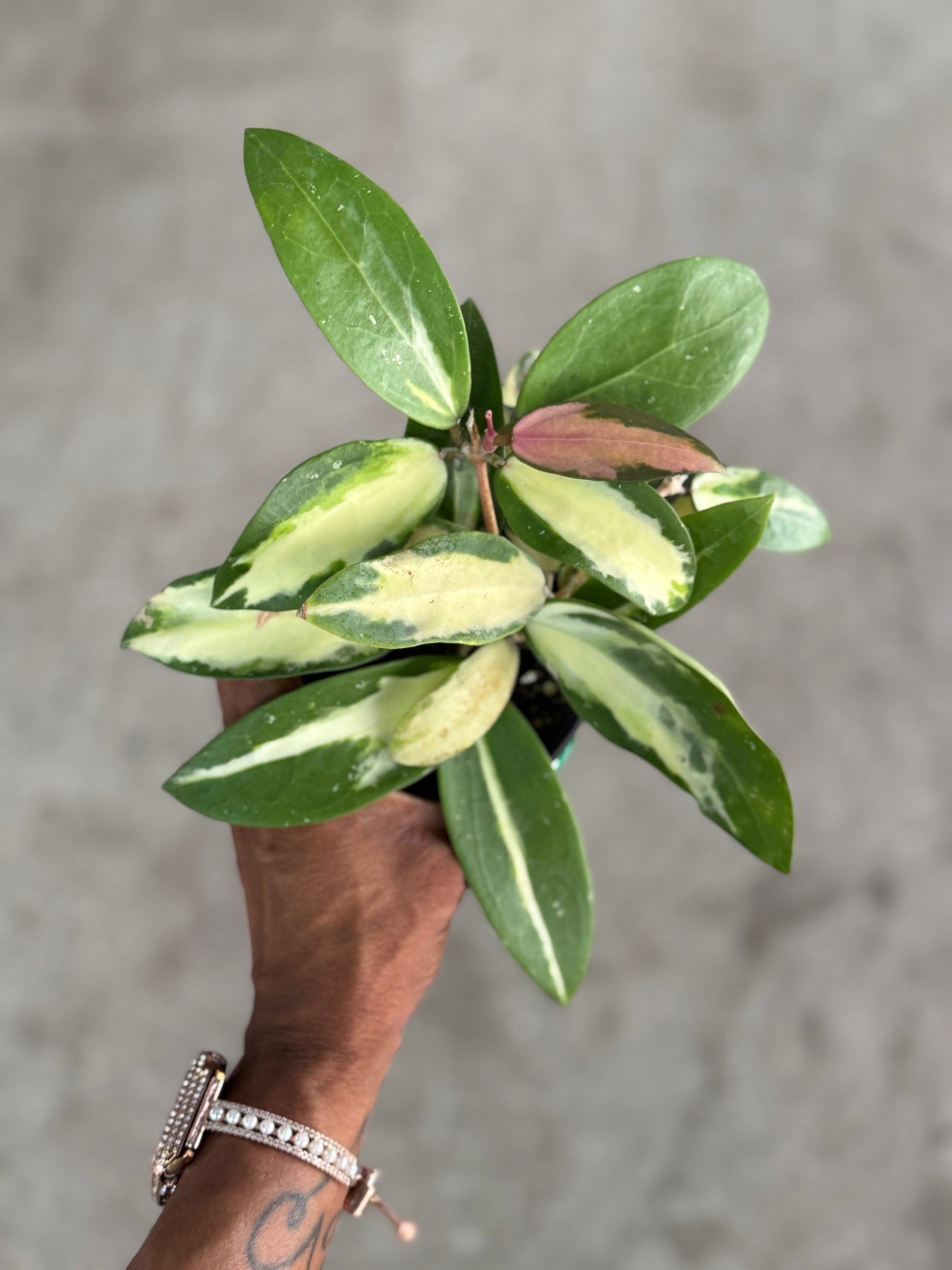The Hoya Acuta (Inner Variegated) is a rare and eye-catching variety known for its lush green leaves with creamy-yellow variegation in the center. This elegant trailing plant is perfect for hanging baskets or climbing support, and with proper care, it rewards growers with fragrant clusters of star-shaped flowers.