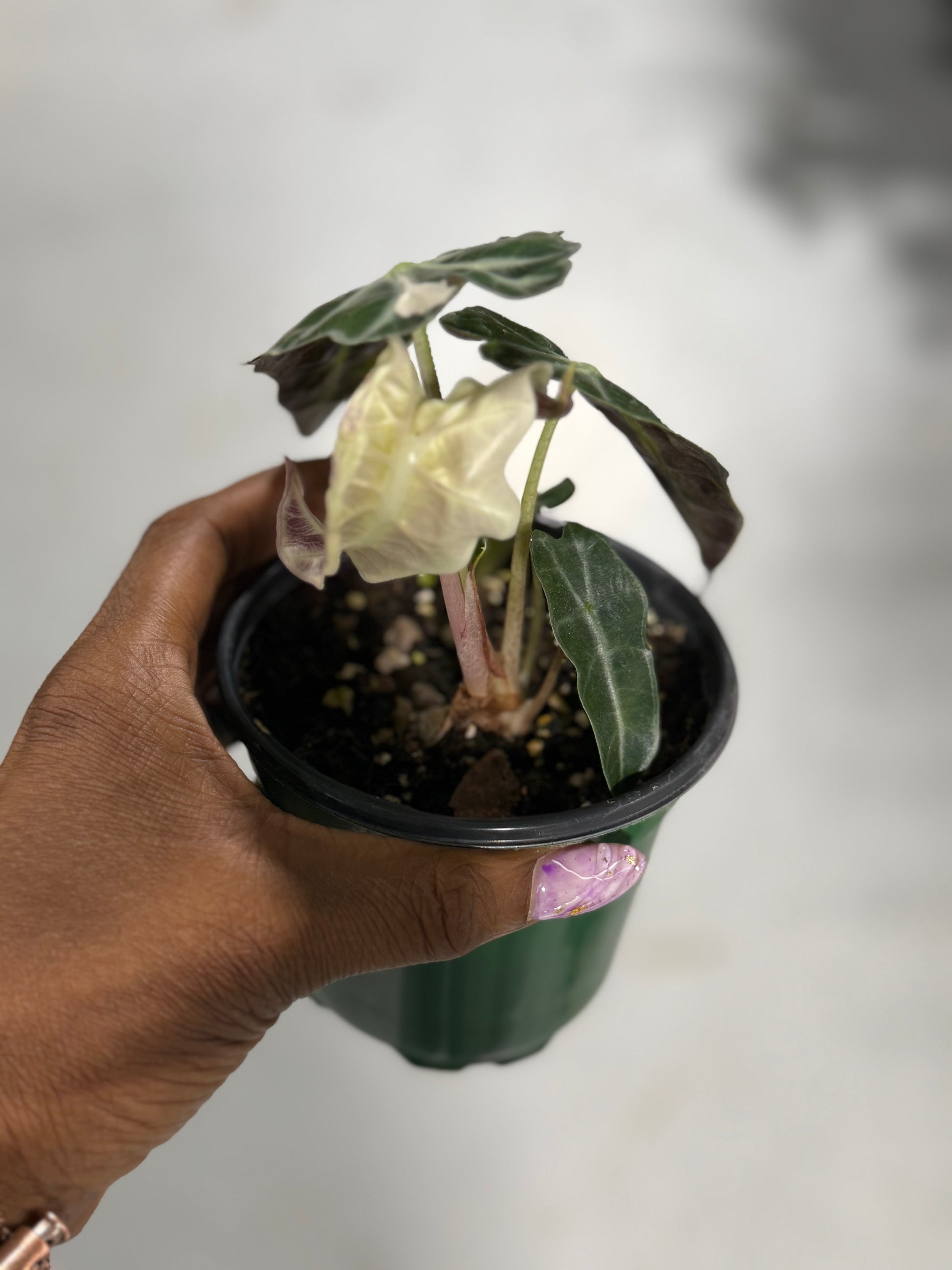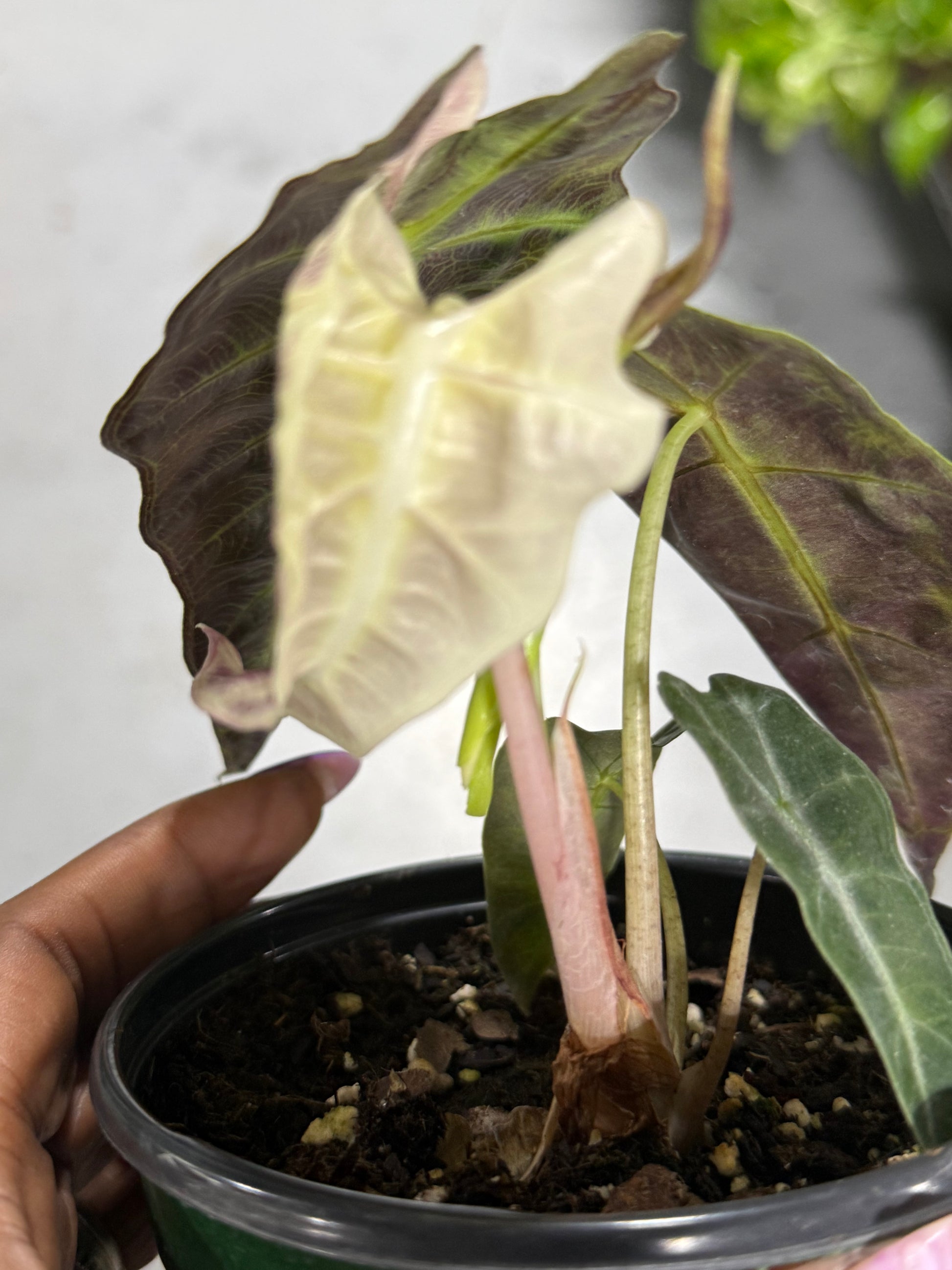 A bold twist on a classic favorite, Alocasia Polly ‘Pink’ stuns with its dramatic arrow-shaped leaves and vibrant pink variegation that add a playful pop of color. The deep green foliage features striking veining, creating a beautiful contrast that feels both tropical and modern. Perfect for bright, indirect light and high humidity spaces.