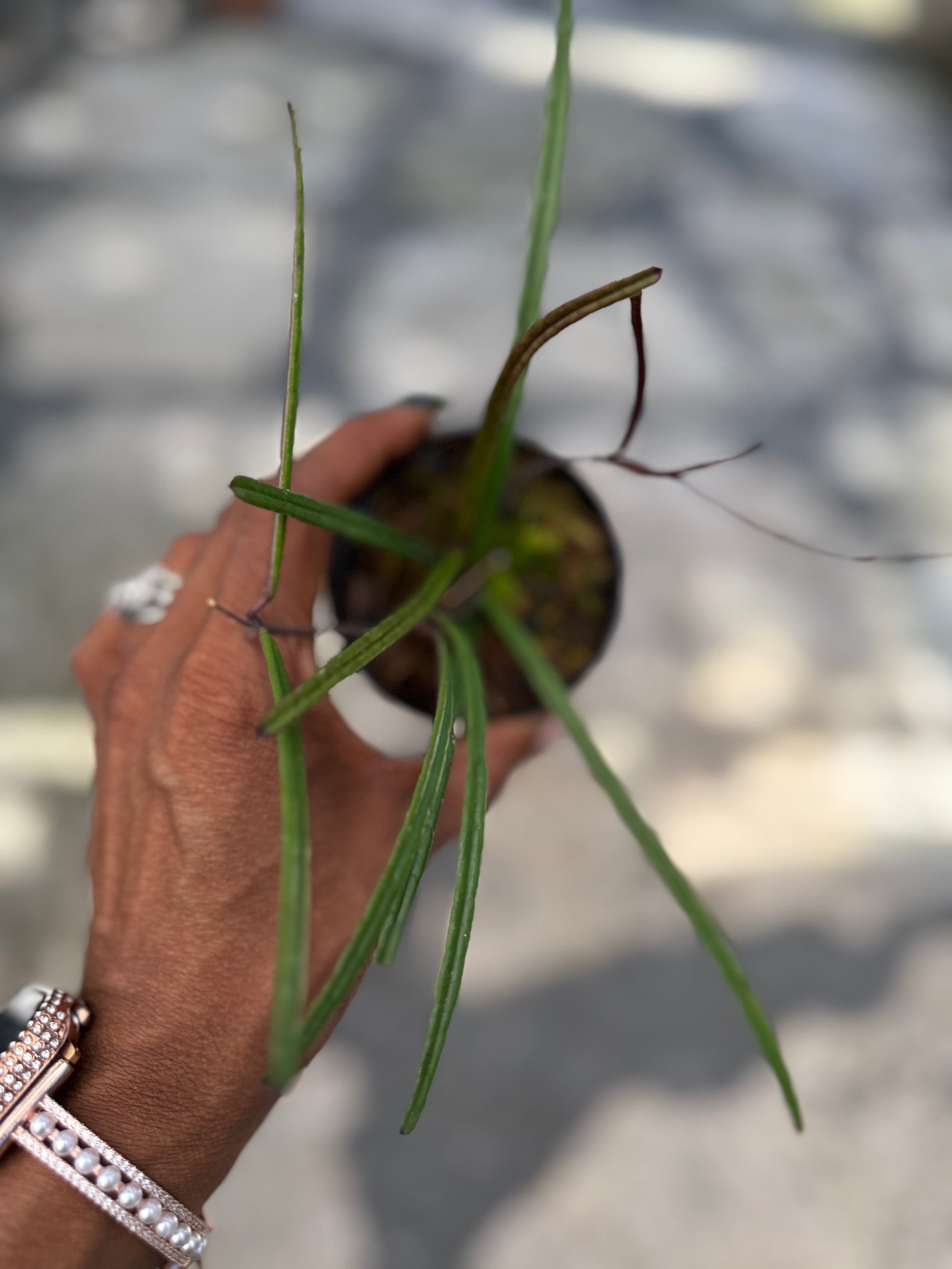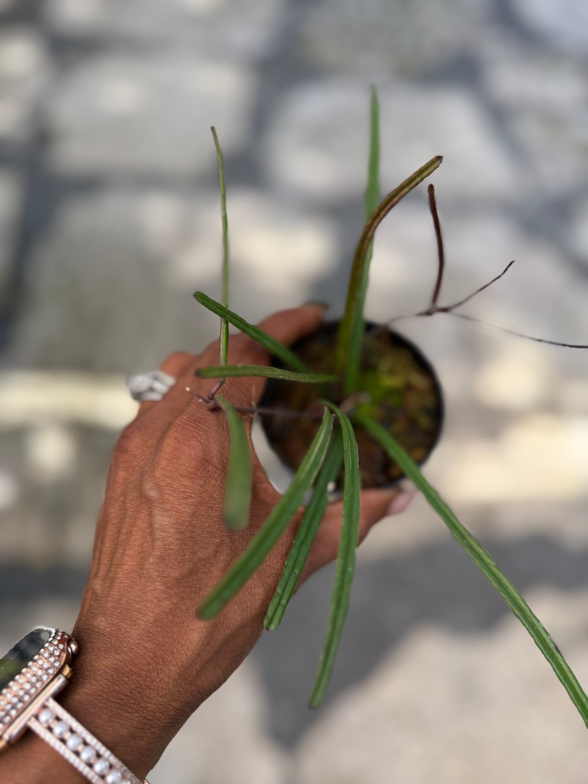 A rare and unique addition to any Hoya lover’s collection, Hoya 'Insularis' features long, slender leaves that give it a distinctive, elegant look. This species thrives as a trailing or climbing plant, making it perfect for trellises or hanging planters. When in bloom, it produces clusters of striking star-shaped flowers with deep reddish-brown hues and a sweet fragrance.