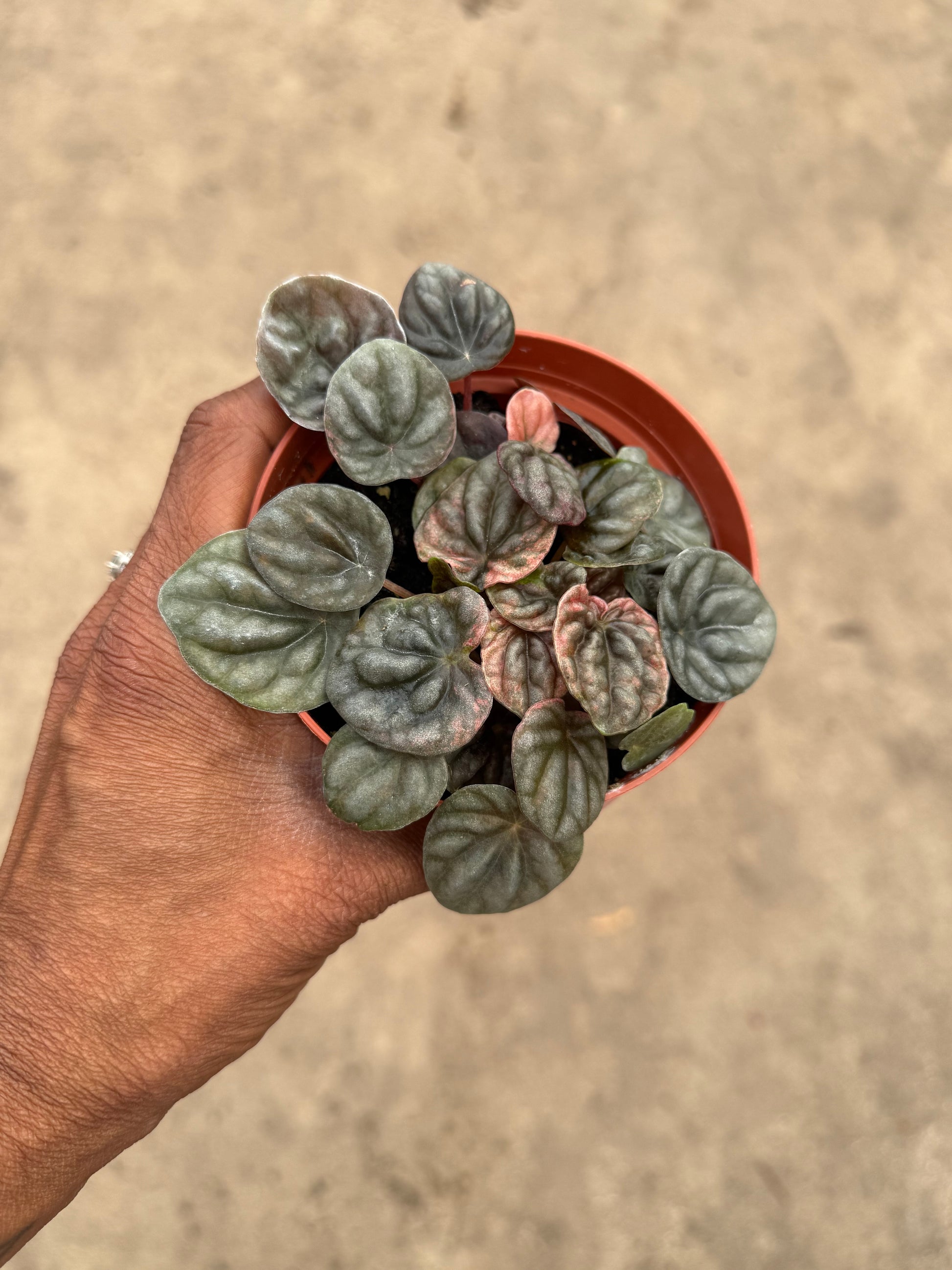 This charming peperomia is known for its warm, peachy undertones and smooth, rounded leaves that look almost succulent. Its compact, clustered growth habit makes it perfect for small spaces, desks, and shelves. Subtle variegation and gentle color shifts give it a sweet, soft aesthetic that brightens any plant display without overwhelming it.