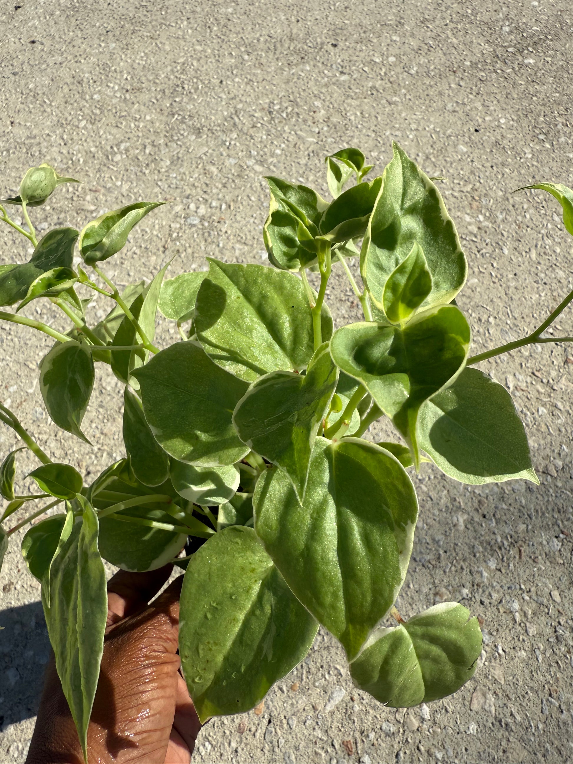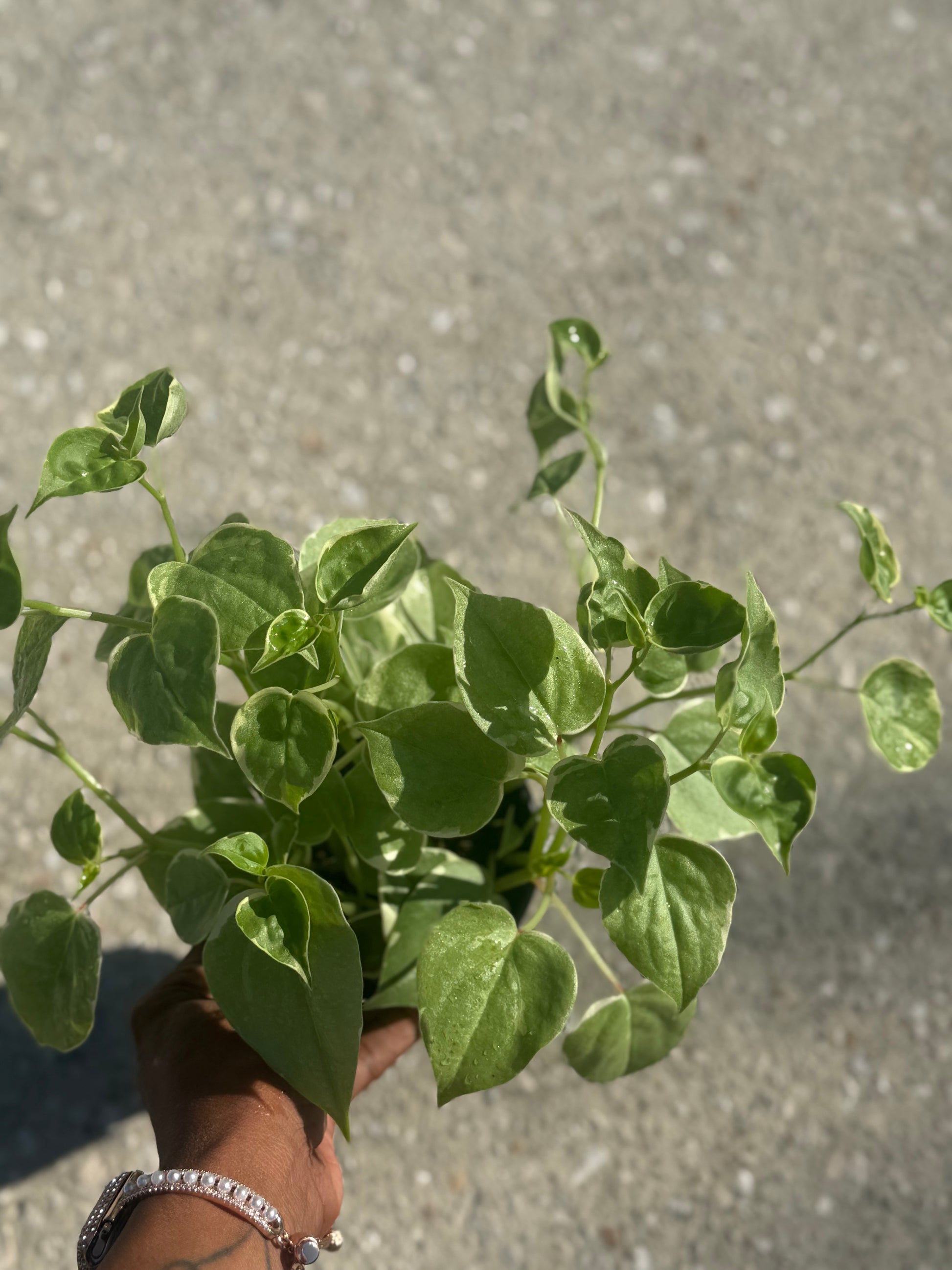 Peperomia 'Cupid' is a delightful variety known for its heart-shaped, succulent-like leaves. The lush, dark green foliage with a subtle silver sheen creates a stunning contrast and adds a touch of charm to any plant collection. This small yet striking plant is perfect for tabletops, windowsills, or any space that needs a pop of love and greenery.