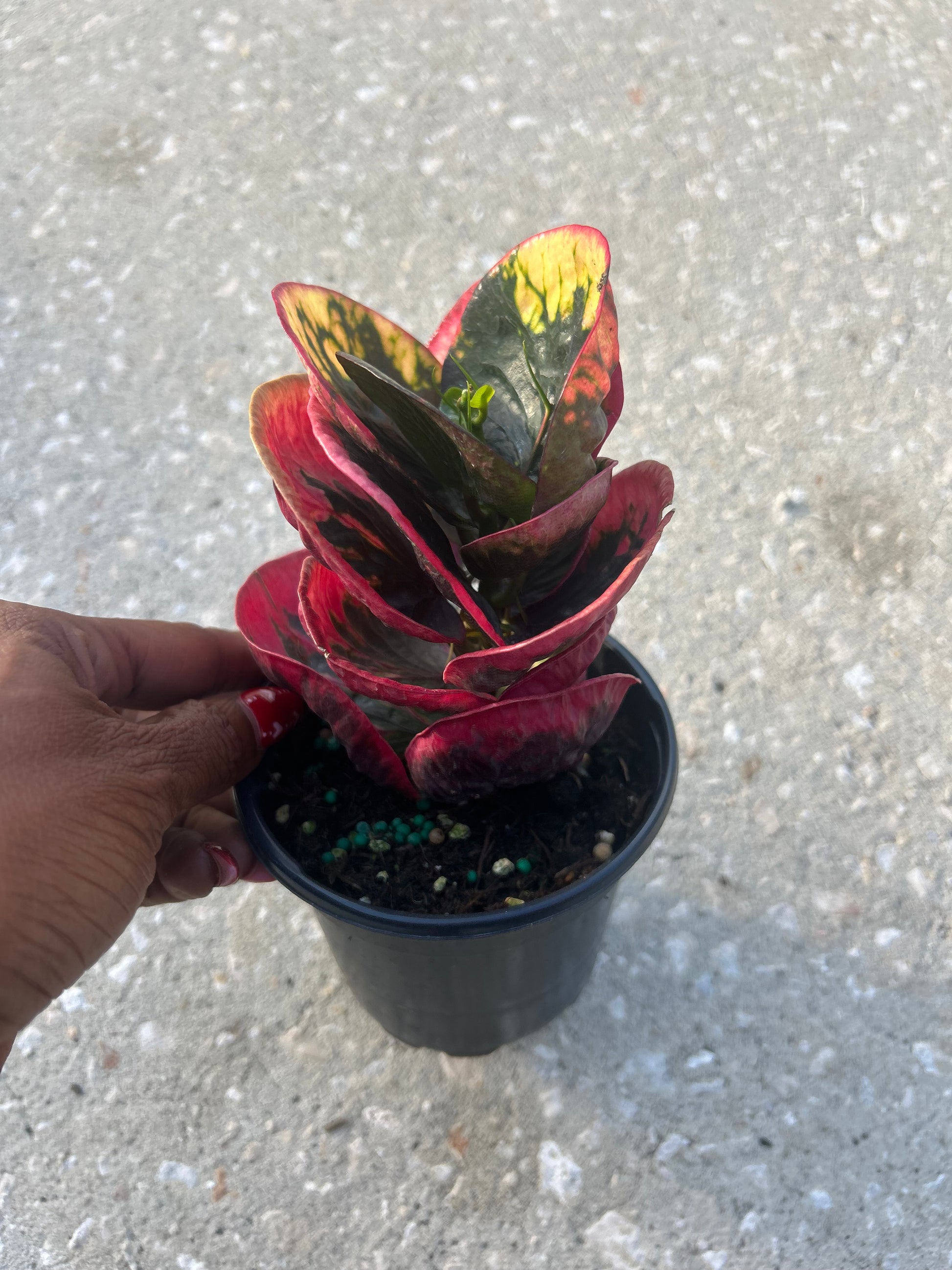 Say hello to the Rose Croton, a true showstopper that will brighten up any room! With its stunning mix of red, yellow, orange, and green hues, this vibrant beauty resembles a painter’s palette in plant form. Its bold, glossy leaves create a tropical atmosphere wherever it goes. If you're looking for a plant that adds a splash of color and drama to your space, the Rose Croton is ready to steal the show!