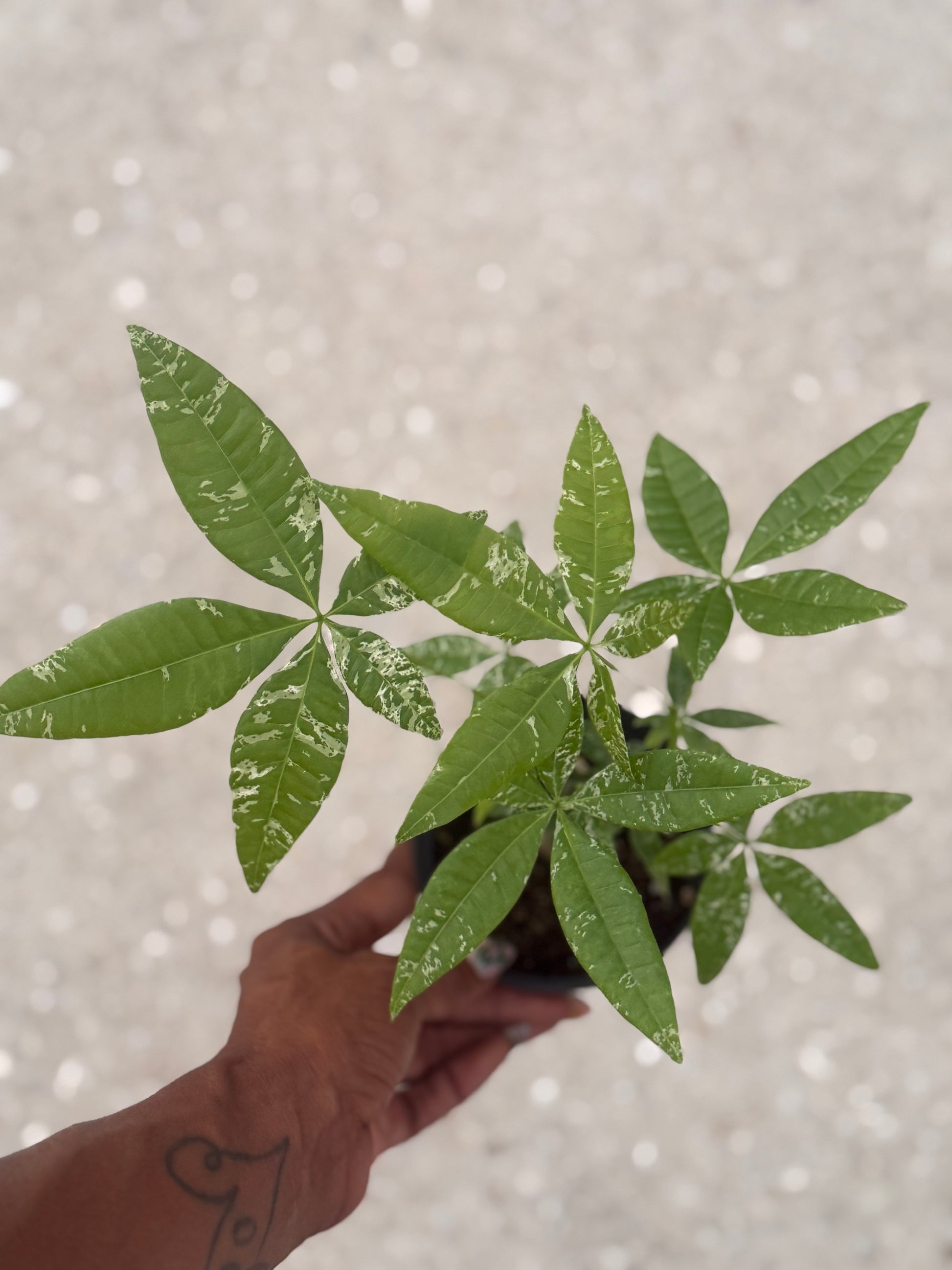 A rare twist on a classic favorite, the Variegated Money Tree features creamy white and green marbled leaves on the familiar braided trunk. Symbolizing luck and prosperity, this plant brings both beauty and good vibes to your space. It’s easy to care for and adds a bright, tropical feel to any room.